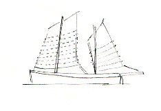 masts were stepped fore and aft. In heavier winds, a single mast was stepped in the middle