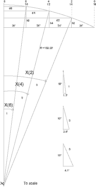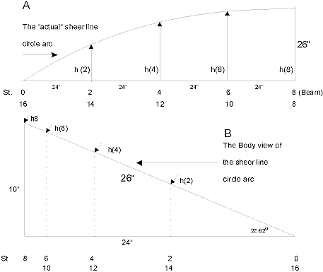 Fig. 2 - 3.   Actual sheer line circle arc (A)