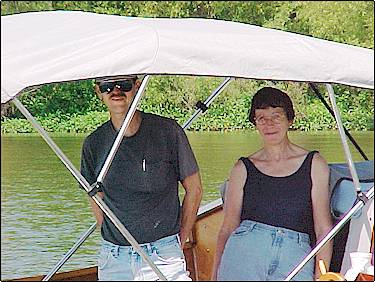 Larry explains the fine points of his jetboat to Betty