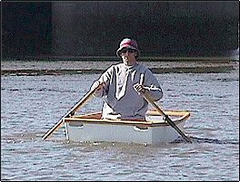 You will be pleased to hear that the Twig Alan and I built a little while ago was finally put through sea trials yesterday.  She handled remarkably well. The 5' oars propelled her better than expected. Extremely easy to maneuver. We found that she is not conducive to rowing in a forward facing position. Proper ballasting is key to the Twig's performance. A weight shift of only an inch makes a dramatic difference. Due to ballast concerns and low freeboard (not to mention cramped space) rowing with two people or large cargoes will be extremely difficult (we didn't try).