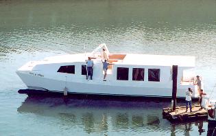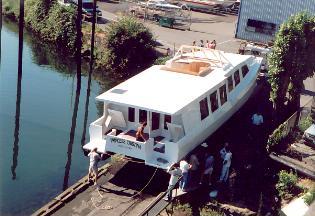 Usually when the end of July hits here in the Pacific Northwest, everybody pretty much agrees that summer is indeed here. But not this year. We seem to be stuck in a perpetual spring type weather pattern, not much boating going on, cool days and chilly nights-not the thing to make you want to grab the sand bucket and head for the beach. Be that as it may, some of our resident hardcore boatbuilders are stirring around. Why, last Wednesday we even launched a little homebuilt power catamaran built here over the past year and a half or so, and I have the pictures to prove it.
