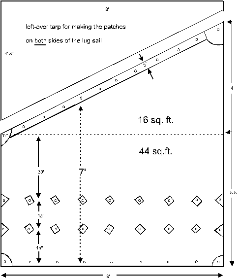 Make the halyard 20'. Drill a ⅝" hole in the mast thwart about 2"