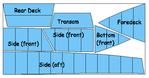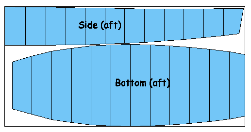 Here's the plywood sheet layout. Note that the aft parts of the sides can be cut together due to the symmetry:
