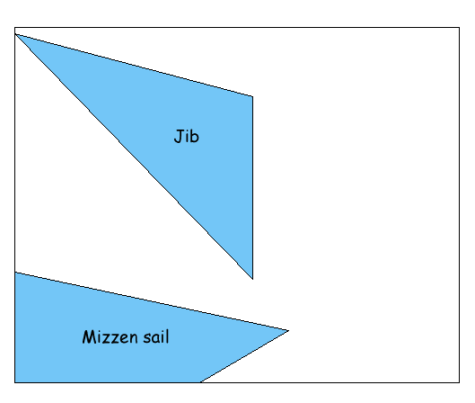 • The high center of lateral area together with the low center of effort of the ketch rig keeps the lever of the heeling momentum small, which is important since the stability is comparable to a sailing canoe.