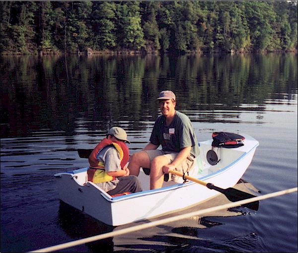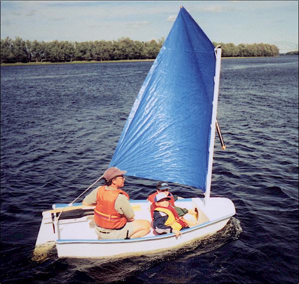 Please find attached my completed D4 dinghy which was finished in early September of 2001. It was constructed as both a sailing version and rowing version. It was originally intended as a tender for our larger Hunter 23 sailboat but instead found itself more fun as a evening use sail boat on our local river. It has proven very stable and I do not hesitate to take it out in strong winds.