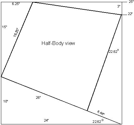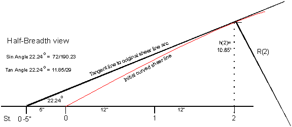 From station #2 forward, and from station #14 toward aft, the side panels are no longer bent, but are allowed to continue in a straight direction as tangents to the sheer line circle segment.