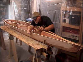 This was to be my first boat building project. I found the stitch-and-glue method to be a good building process for someone with limited spare time. A lot of the work could be broken down into 20-30 minute jobs that require epoxy-setting time in between. Epoxy is wonderful, forgiving, and - best of all - odorless stuff. I could build in my basement without fumigating my family. I built the main hull over the first winter and started working out concepts for the sail rig.