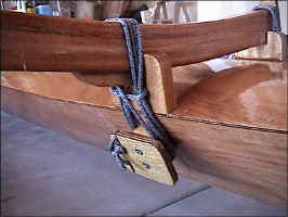 Now, I don’t claim to be an engineer by any stretch of the imagination and I don’t advocate modifying a designer’s plans in any way, shape or form. But that didn’t stop ME. I eliminated the ama sockets altogether and designed cleats for lashing the akas to both the hull and the amas. As a side note, I have noticed that CLC recently released their Mark 2 sail rig, which has no sockets and uses lashings for the ama-to-hull attachments. I guess I was ahead of my time. If only I’d thought of some of the more elegant solutions they came up with.