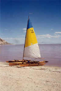 How does my little trimaran stack up to my list of criteria so far? Well, the jury is not entirely in; I’m still learning and making improvements. I haven’t been able to log as nearly as much sailing time as I had hoped, but I have been able to make a couple more outings this season. The real shake-down was a 20 mile out-and-back sail to a remote island in the Great Salt Lake. Not only did the little boat prove herself to be fast and versatile, but she was stable enough for my crew and I to stand up and move about easily while under sail. The kick-up leeboard and rudder really helped her excel for thin water sailing and she passed the test for transportability and remote launch and recovery.