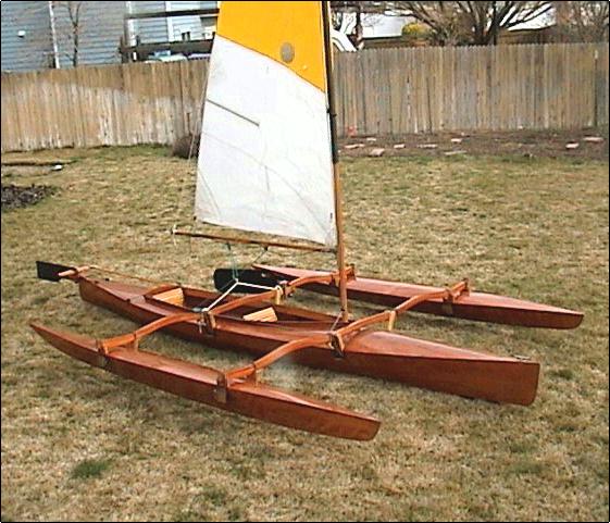 After paddling the boat for a season I set aside the next winter’s spare time to build the sail rig. I bought the CLC plans and built twelve-foot amas to their dimensions, with some modifications for my own attachment hardware.