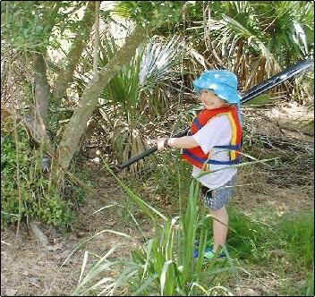 snakes here in Texas so I use a walking stick to poke around in the