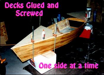 hull panels and decks were cut from two 4' by 8' sheets of 1/4 inch Luann