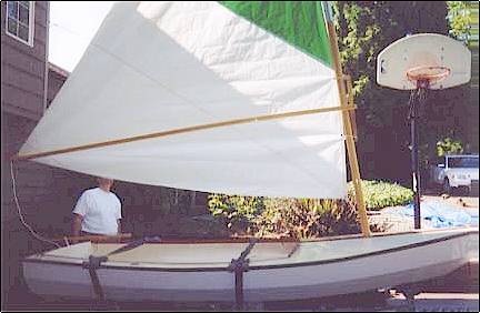 image001.jpg (30183 bytes) It did not take too long for me to realize that the boat I really wanted was not available to purchase so I began to look at boat plans on the internet. I narrowed my search to the more classic style of sailboat. My boat would need to be a sailboat first and useable with oars if the wind died. I did not want a motor. I have owned several small fishing boats so I knew that a boat in the 12' - 14' range was my target size range. A 12' boat on a trailer would fit in my garage.