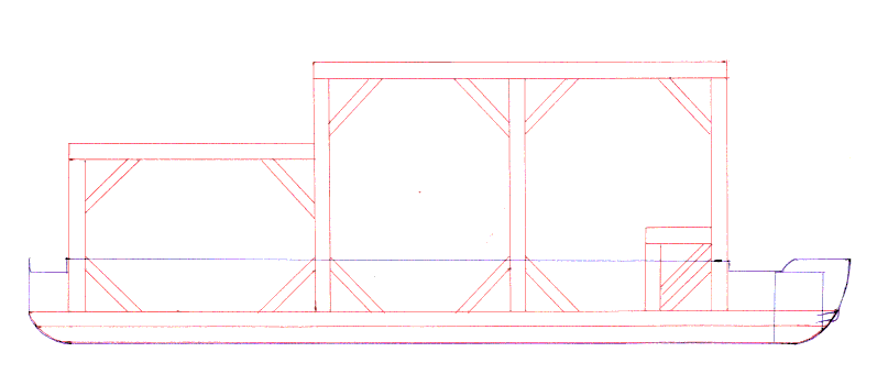 note: the lengths and widths can be reduced 20% for a smaller houseboat while preserving lumberyard dimensions