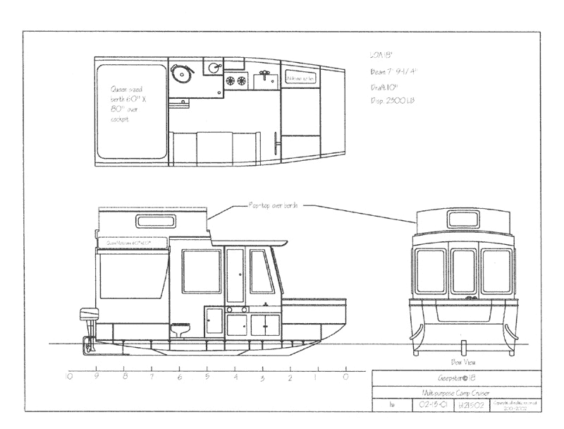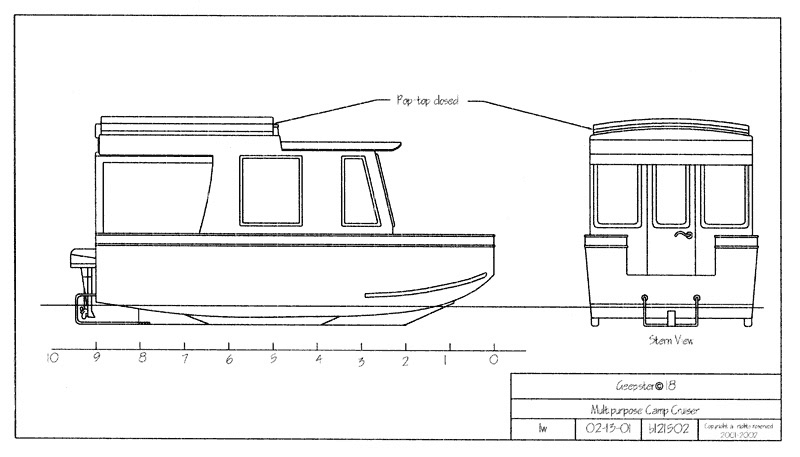The Geepster© is a trailerable 18’ Camp Boat. The Geepster’s specifications are: