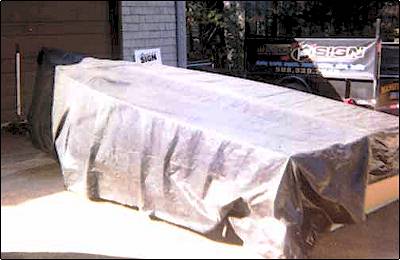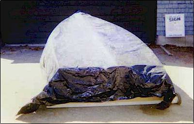 2. When you want to cure that epoxy and save a few bucks on the heating bill --- use the sun on good days -- we wrap our hull in heavy mil. black plastic and roll her out into the sun. The plastic sheeting is available at any of the Home Discount places and it heats up like a solar panel even on cold days. Helps keep the shop floor open for the next step or worse, WORK !
