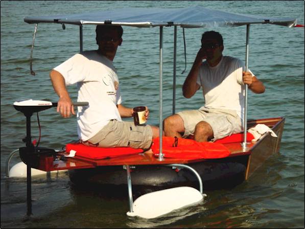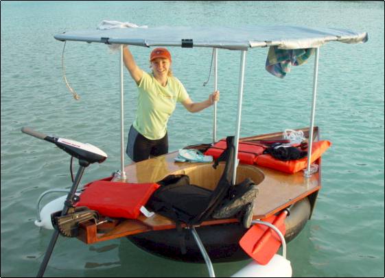 My wife and I wanted to see fish and such on the clear water lakes of northern Michigan, so I decided to build a little glass-bottomed rowing kindof thing. Being an accomplished woodworker and inventor of exotic laminates (see www.johnblazy.micronpcweb.com) I knew I could turn this into a real involved project -- and resisted, but eventually, the little boat yelled out in a hollywood sort of way "Resistance is Futile ! ! !". You see, I built this thing within the the previous two weeks of last years vacation with some scratch - resistant Lexan for the "glass bottom", some bending plywood, PL Premium and ten year old West System, and a tractor innertube for bouyancy