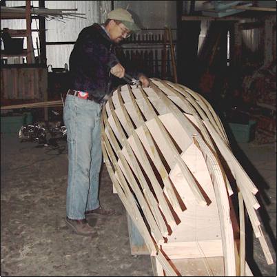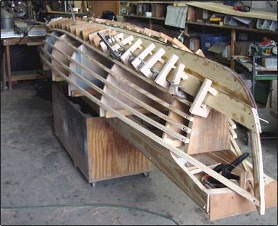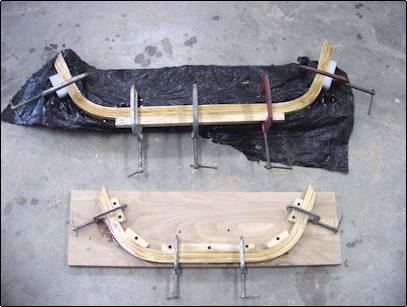 into the proper shape. I made some forms and glued the thwarts in