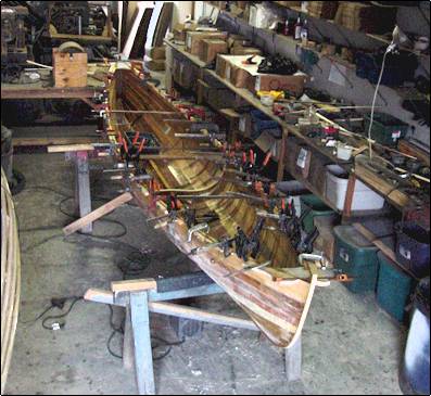 | Finally, all the strakes are glued and the 'husk' is