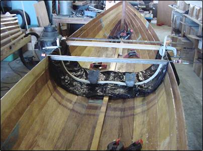 and the inwales to the hull. I used every clamp I could find. |
