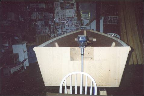 My sons (Shane Michael and Dan) and i made this boat with 2 sheets of 5.5 mahogany. It's sole purpose is for fishing.  It is only 8' long and just under 4' wide at the back next spring we plan to add the middle seat and ore's right now we just use a small 12 thrust trolling motor
