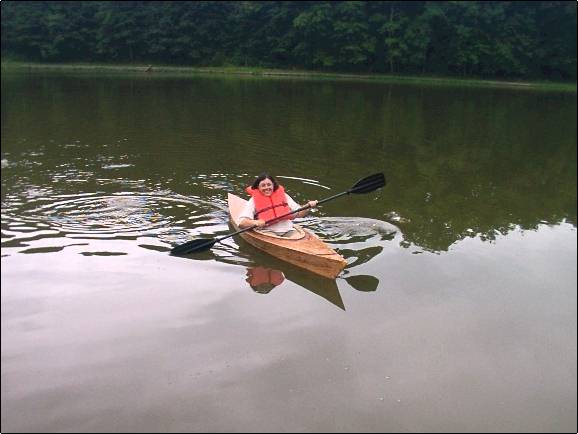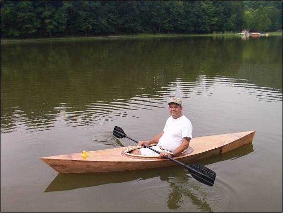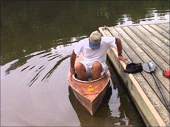 Well.....I reluctantly launched the Yakette this morning! As you can see I was being very careful while boarding since I've put on some weigh and up to 205 now. I hope my doctor doesn't go into Duckworks! I'll be in big trouble for sure! Guess I'll have to start paddling again to get some of the lard off!
