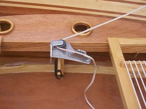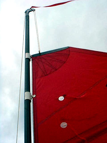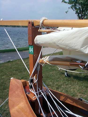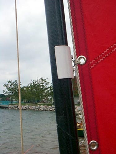Kayak detail on how they attach the sail to the mast.