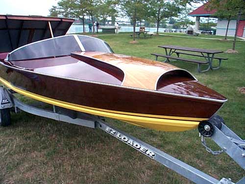 a excellent restoration of a 4 cylinder plywood run-about.