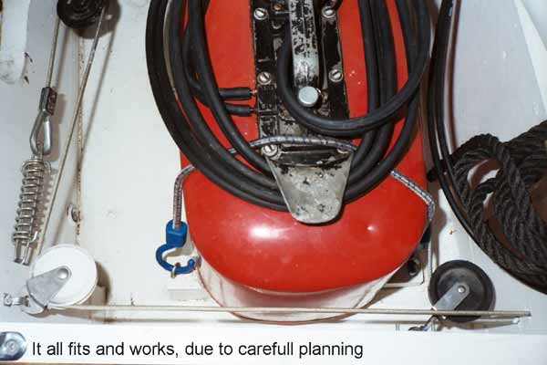 wheel to starboard on the aft bulkhead of the cabin, and ran both cables