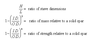 to calculate stave dimensions for spars with O.D. of 1, 2, 3,