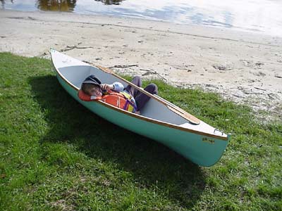 It was a hot summer’s day, so with a warning about snakes and the wearing of a PFD, she and her brother spent a very pleasant couple of hours in (& out) of a lightweight, clinker-built Wee Lassie design. I noticed, as I occasionally checked on her well-being, that she was handling the canoe very well for a beginner, and was having a ball.