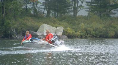Under way again the suction tube was still making a lot of drag (it wasn't possible to row the boat much faster than 1.5 mph) but with the tube closer to the boat, directional control was much improved and we were actually able to go in straight lines and make predictable turns.