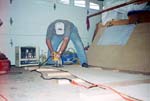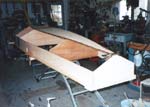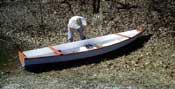 Being a man of action, I consulted with my favorite small-craft designer, Jim Michalak, and he suggested his Oracle design, a 15 ½ foot long, multi-chine “taped-seam” boat. Having yet to build a taped seam boat, and itching to try something no one else had yet built, I began construction in November 2002, and by the end of Jan.2003, the boat was ready for the water. Unfortunately, the water, being frozen-solid in one of the colder winters of recent memory, was not ready for the boat.