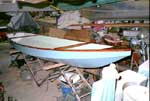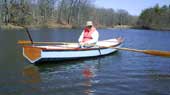 After spending a fair amount of time filling and sanding, which did not produce all that fair of a hull, I painted the Oracle inside and out with Behr latex primer and Behr latex exterior house paint. The gunnels and thwarts, which are cheap Home Depot lumber, were stained and varnished.
