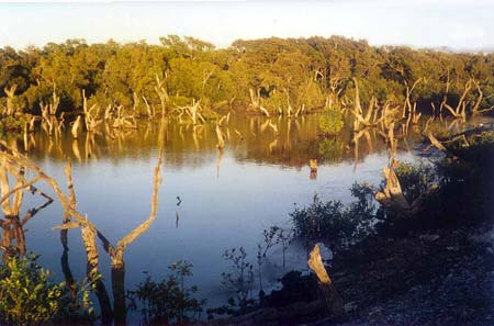 Then the dolphins came, edging closer when I slowed down and swam around the boat when I stopped. One of them dove under the boat and fooled around down there which worried me, the motor was still running in forward gear. He resurfaced a minute later. This had Wayne quite excited, you know? He loves animals, and dolphin are highly regarded by everyone I know. They became bored with the boat and swam off. To cap it all Wayne noticed something move in the water as we were speeding along and insisted I go back. I was going to tell him to jam it, I was sick of stopping for every little flicker in the water that might happen to be something of interest, but I went back instead. It was a Dugong, I only just saw it before it dove out of sight. I have never seen a dugong in the flesh , and this was only the briefest of sightings but I felt it was worth it, just for the sake of saying I had seen one. The bay has large herds of them but they are a shy creature, and rarely seen.