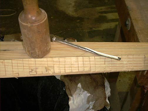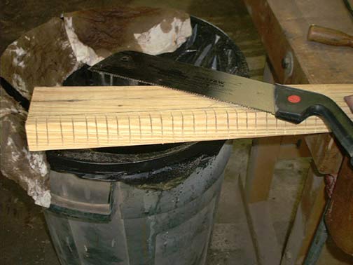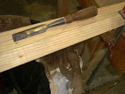 Then I used a narrow chisel to dub off the excess wood between the cuts, being careful to not split off the bottom edge.