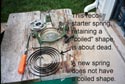 The starter rope was an old one; cotton fiber over a metal wire core, so I decided to replace the rope and also the recoil starter spring. Once removed, the old spring demonstrated it’s age by retaining a coiled shape, and the rope was replaced with ordinary nylon braided rope. This work was accomplished on a Saturday morning, less than one week after the Sunday degreasing of the motor.