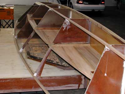 The gunwale chine log under the bridgedeck, whose shape Jim is