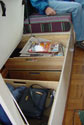 Here is one of the clever slide out storage areas...