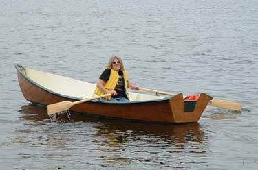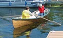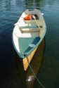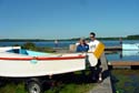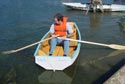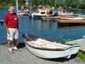 Bill Jaine is rightly proud of his Auray Punt ("Cygnet") which he rowed around the harbor with his wife aboard.