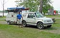 Last but not least, our good friend and frequent contributor to this site, Richard Frye came with Tear Drop trailer loaded with various Yakoos and skinboats. Here he is loaded for the trip home.