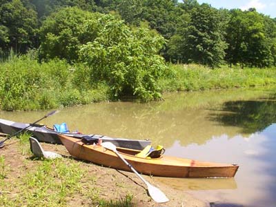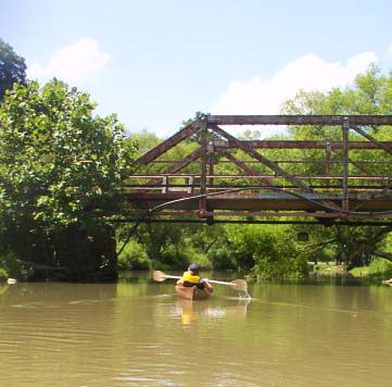 We left the serenity of the island and paddled down and beyond the iron bridge till we got to some mild white water. We had fun trying to go upsteam into the rushing current. Not strong enough as to be dangerous, but enough so you couldn't go but so far before it turned you around and sent the Stealth and the Yakette zipping along downstream. She and I both were having a smashing good time as they say in England till I got tired and said it's time to head back. My huffing and puffing made me realize that white water days were only fond memories now! ‘Course I knew that already, but that little thrill brought back a lot of them. We encountered more wildlife on the way back. Ducks, the normal hoard of damn geese, a carp now and then, and a blue heron or two that raise havoc with the baby frog population! I've even see these great birds gulp down a humongus bullfrog as well as some pretty damn good sized fish! Yep, and about the bullfrog, I'm talking about the ones that have legs the size of a big chicken! We're talking over 14 inches long now and that's a helluva lot of froglegs for a bird to swallow!