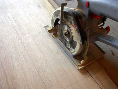 placing a 1/8 inch scrap of ply under the base of the saw and