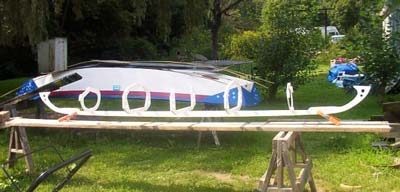 I'm going for lightweight with this boat. I ain't quite decided on what I'm going to cover it with, but what ever it is I want the boat 20 pounds or less. Regular cotton duck canvas will push the weight up more than I want so I'll probably go nylon or dacron. I'll try to have it done by the Canadian messabout but I doubt it since I got so much other shit to do! I do want to try to get the stringers on sometime soon..maybe this week.