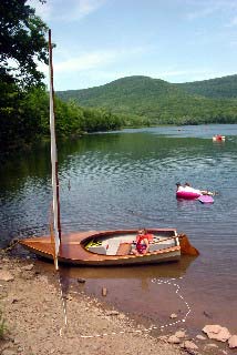 Photo is of my recently completed Swifty 12. That's Isabel Battista waiting for her dad, Garth, to give me a sailing lesson.