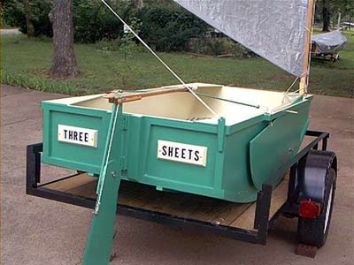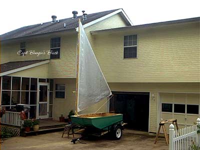 Here's a few pictures of my Finally finished brick "three sheets". The retractable rudder and leeboard are changes from the original design. the air matress is strapped in and serves as floatation and a soft spot for my aging rear. I have really enjoyed building this boat, cannot wait to start another project.