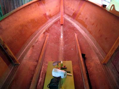 and taping up the chines. Three layers of tape, inside and out,