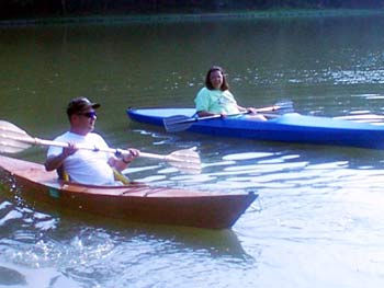 Here's a pic of me and Kaye yesterday. Me in my Yakette and her in the blue skinboat. For a non-paddler she really liked the stability, speed and ease of paddling and was surprised all the way around with the skinboat. Hell I been tell'n her that for a long time.....Years it seems like! But she won't admit to that!