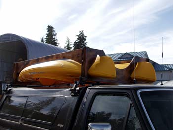 chuck: a very clever kyack carrier spotted in the parking lot next to the marina in Port Hardy, British Columbia