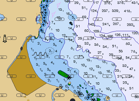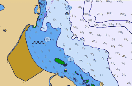 soundings, navigational aids or special areas.